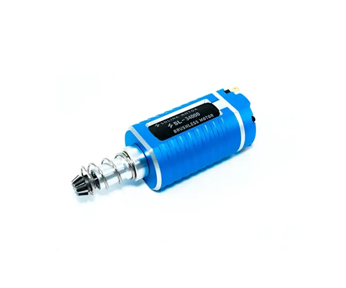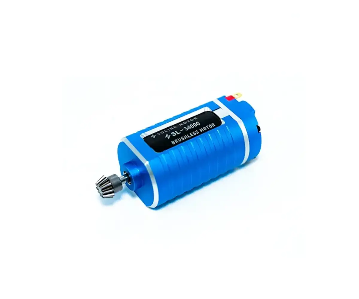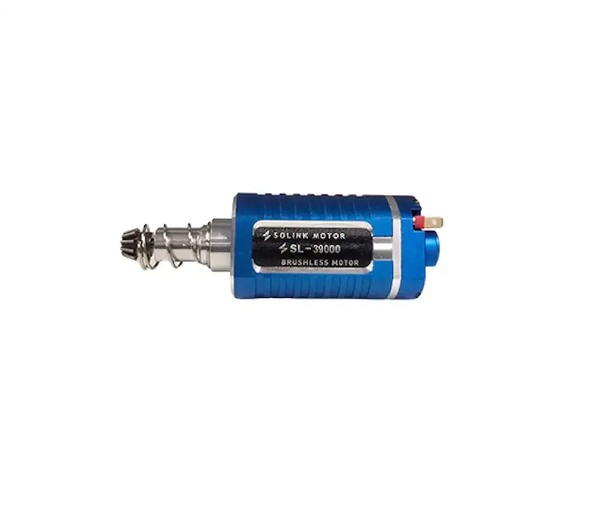The Solink Professional Brushless Motor is a next-generation upgrade for AEG gearboxes, built for players who demand high efficiency, cooler operation, and uncompromising durability. Designed for both experienced techs and players stepping up their performance builds, this motor delivers consistent torque and speed while extending battery life. Available in both 34K and 39K RPM versions with long or short shaft options, it’s a versatile choice for a wide range of AEG platforms.