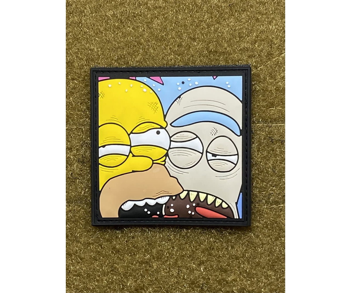 D'oh! Wubba Lubba Dub Dub! Show off your flair on the battlefield with a sweet PVC patch featuring two of the greatest dads in television history: Homer Simpson and Rick Sanchez. Colorful and slightly 3D, you're sure to run doughnuts around the competition when it comes to style. Portal gun not included. Please equip responsibly!