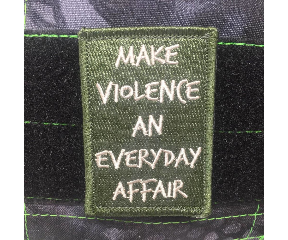 We went with a OD'ish color scheme this time for the cousin of our original "Here for the Violence" patch. Let people know you mean business and the violence just doesn't stop after Cinco De Mayo and all them cervesas and carne asada tacos you had that led to those poor choices of a picking a fight with your wife's cousins husband at your last family fiesta.