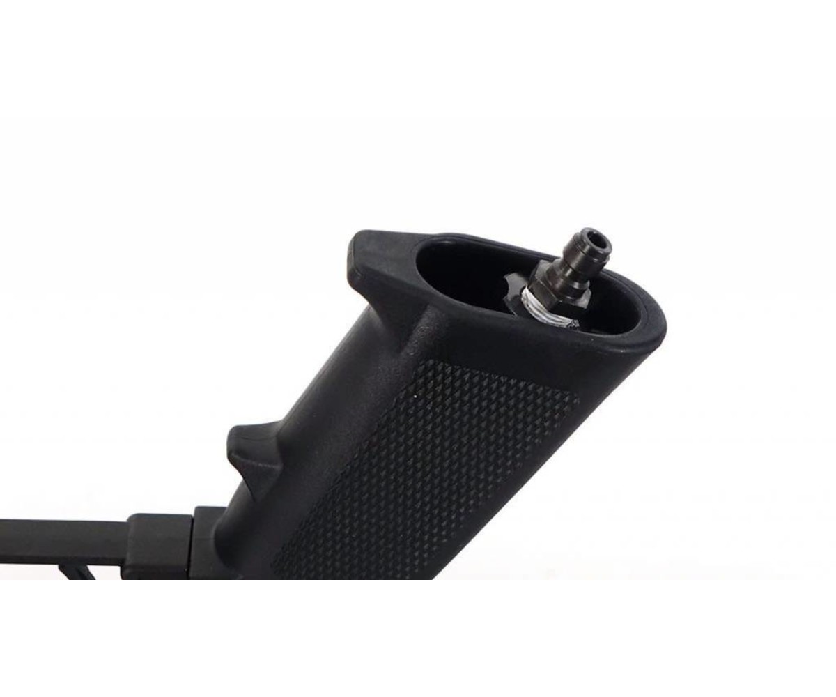 The M4 Carbine features a realistic flip-top break down design like a true M4/AR. It features built-in high pressure air (HPA) remote line that utilises inexpensive paintball-standard 800 psi tanks and remote lines. In HPA form, it is compatible with most airsoft magazines, from 30 to 300 rounds. If you install the CO2 convertor, you can use 80 round magazines that hold the CO2 cartridge inside the magazine (not included). The M4 Carbine has a metal receiver, and is compatible with many actual M4/AR components including a rear stock, front shroud and standard Picatinny Rail System.