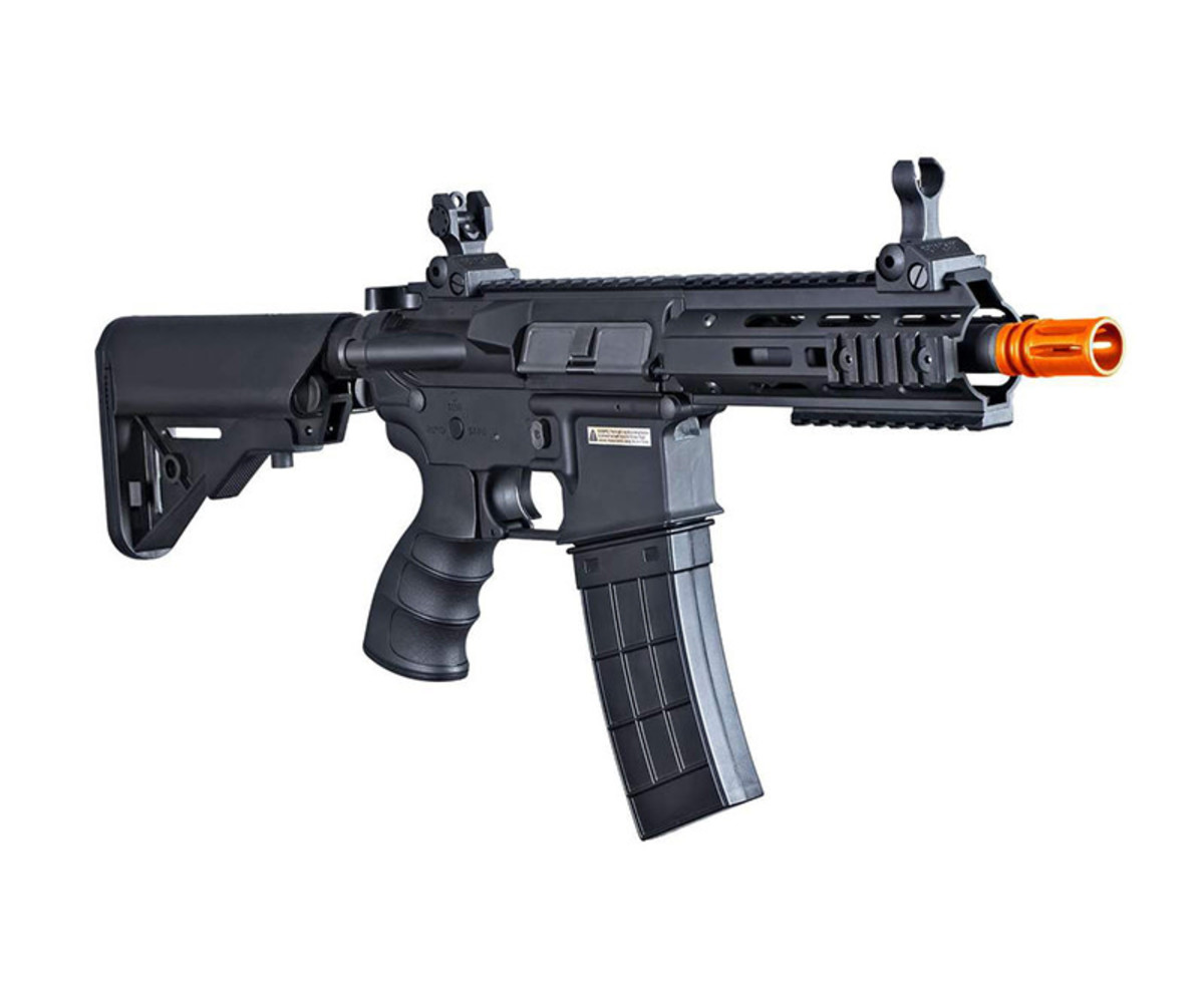 Solid AEG with Quick Change Spring System, and built in Mosfet. Available in 3 lengths that all include a carved polymer grip and a functional easy-lock latch adjustable stock for the ultimate in ergonomic adaptability. A full-length integrated top M-Lok Rail provides quick mounting for optics and accessories. Solid reliable flip-up front and rear adjustable sights ensure greater aim and can be folded to make room for optics when needed.