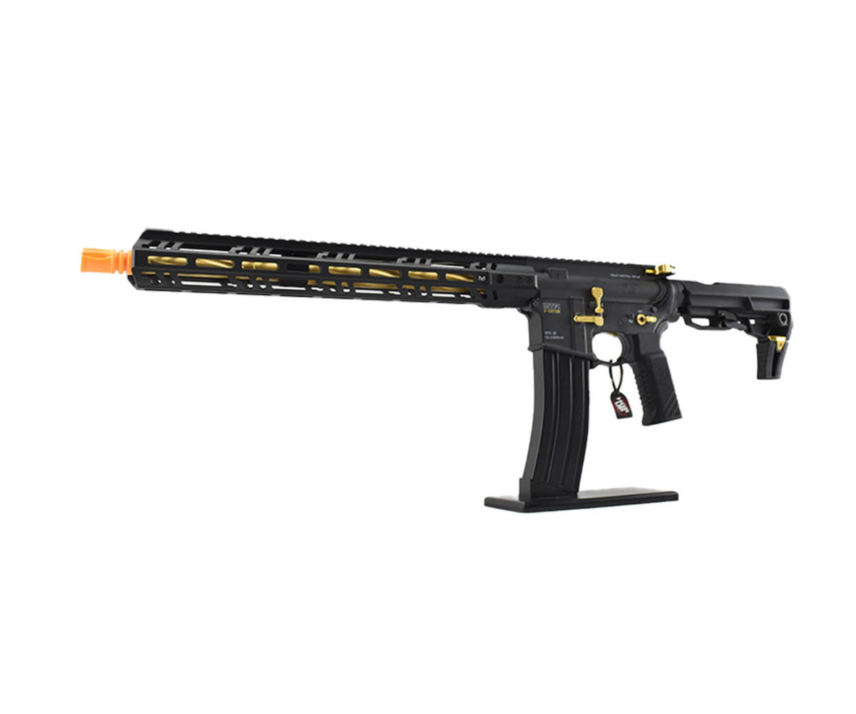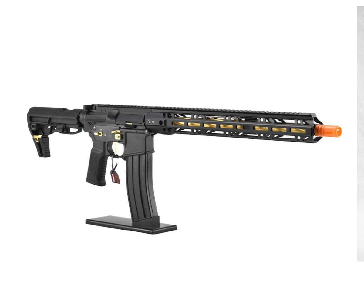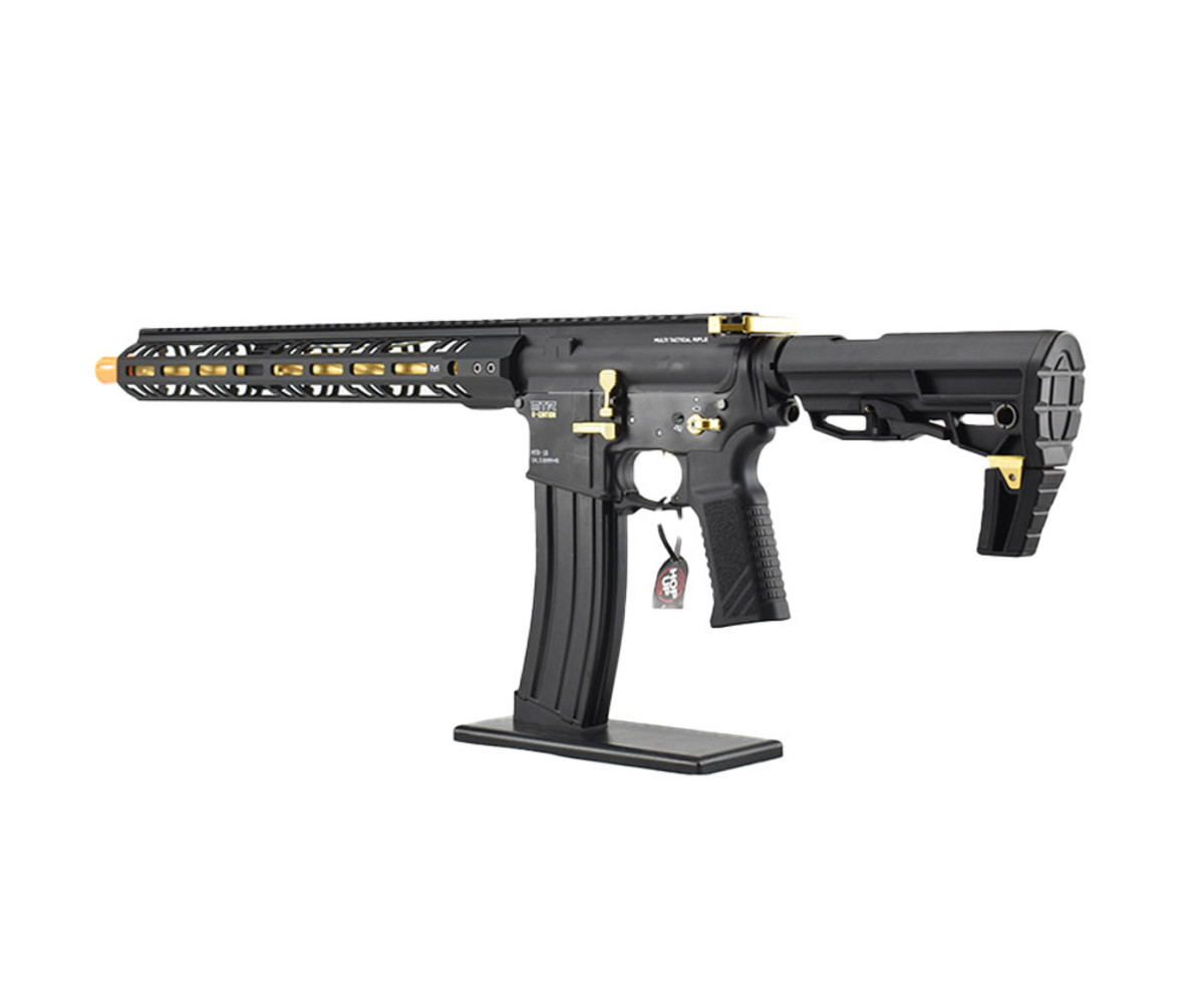 The TM MTR16 is a dressed-up version of the TM M4 MWS with a sleek M-LOK handguard that allows attachments such as laser, flashlights, and grips. The MTR16 has a strong metal construction with a 16in lightweight outer barrel constructed out of aluminum and is 14mm counter-clockwise.