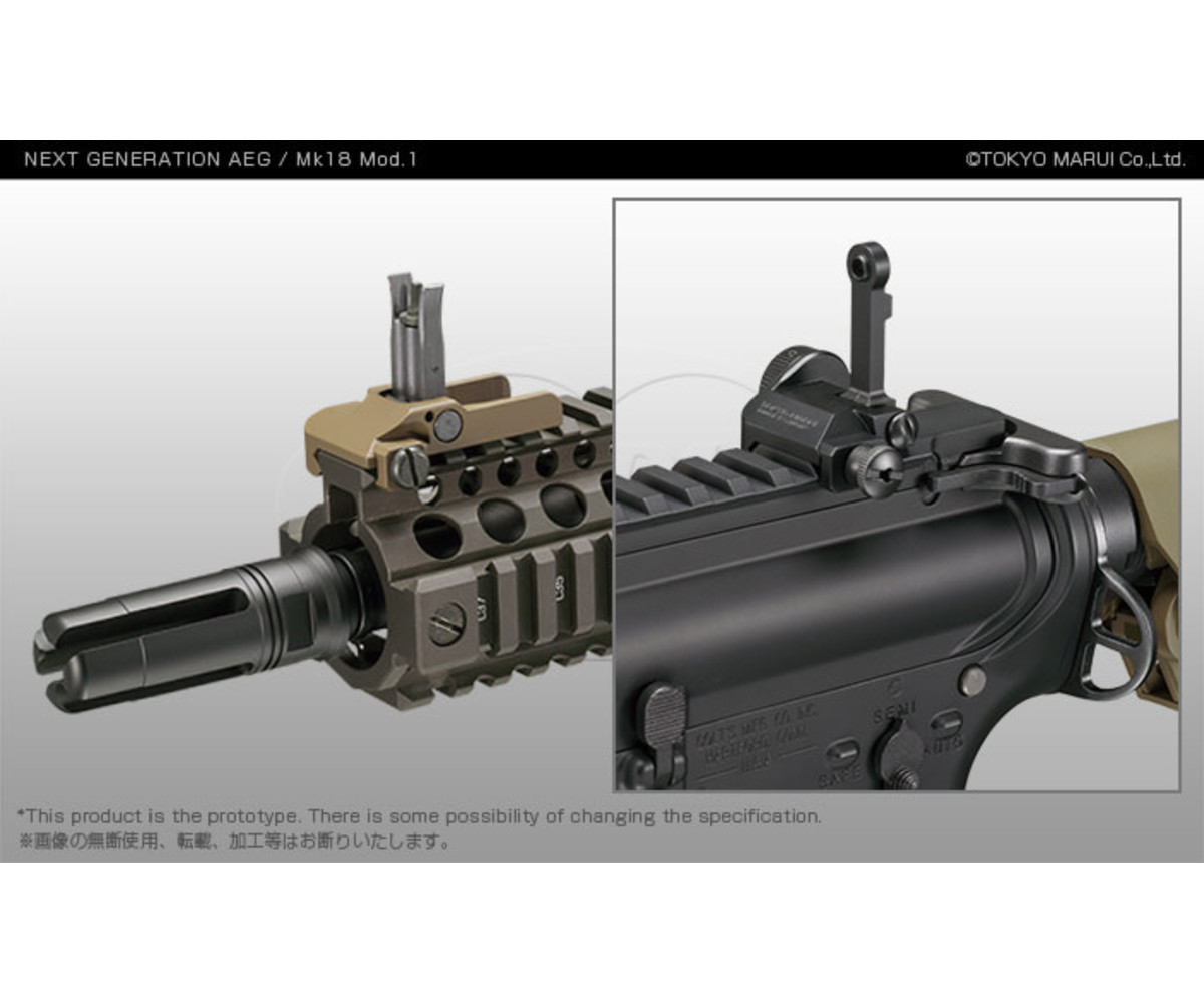The Next Generation Shock Recoil System uses a reciprocating weight to simulate recoil and muzzle flip. This gun features a metal receiver imprinted with licensed trademark markings. The MK18 features Tokyo Marui’s legendary quality internals and stock reliability. In addition, when using the NGRS magazine, the bolt will lock back on the last shot.