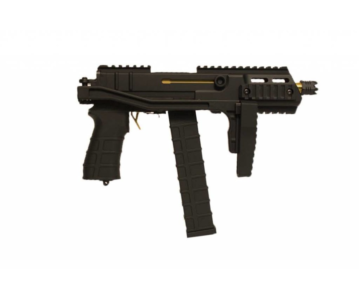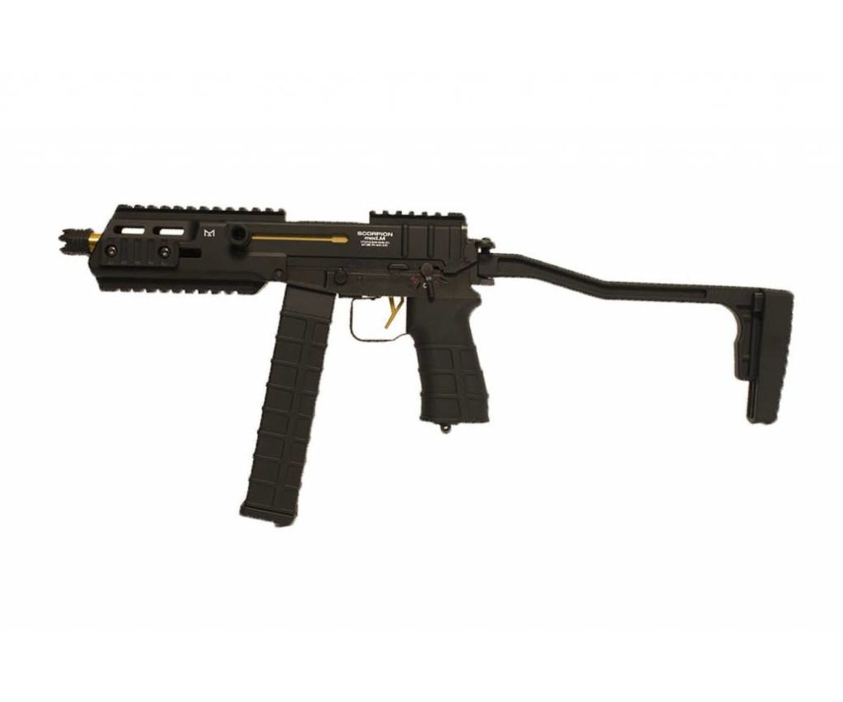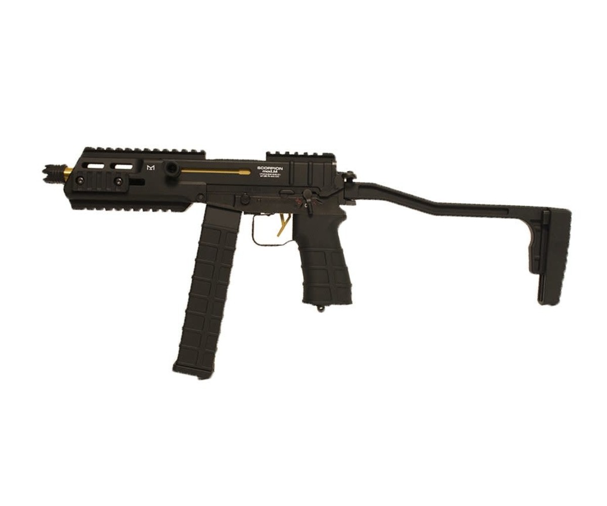 The Tokyo Marui Scorpion MOD-M takes the design of their older KZ Scorpion and revamps the externals by switching the handguard area to M-Lok and putting Picatinny rails on top of the gun with a side folding stock to finish up the changes. The Scorpion Mod-M is also able to use other Tokyo Marui Scorpion spec magazines so the player has more options to choose from. The gun is also decorated with gold accents to spice up the overall look of the gun. They also included a crown-shaped flash hider to replace your orange tip. Designed as a small compact SMG the Tokyo Marui Scorpion MOD-M brings a twist of fun for all those who wield it.