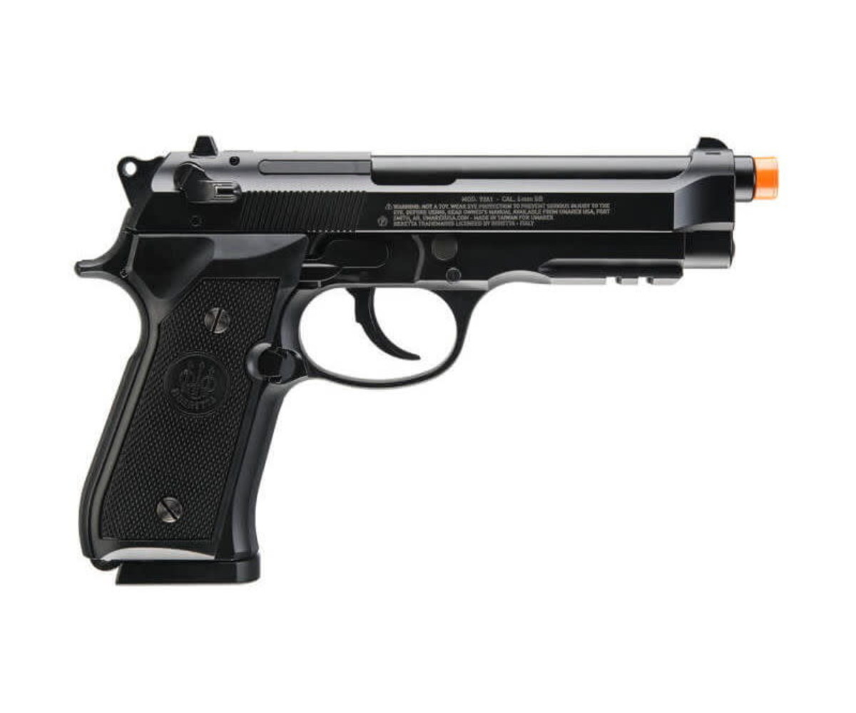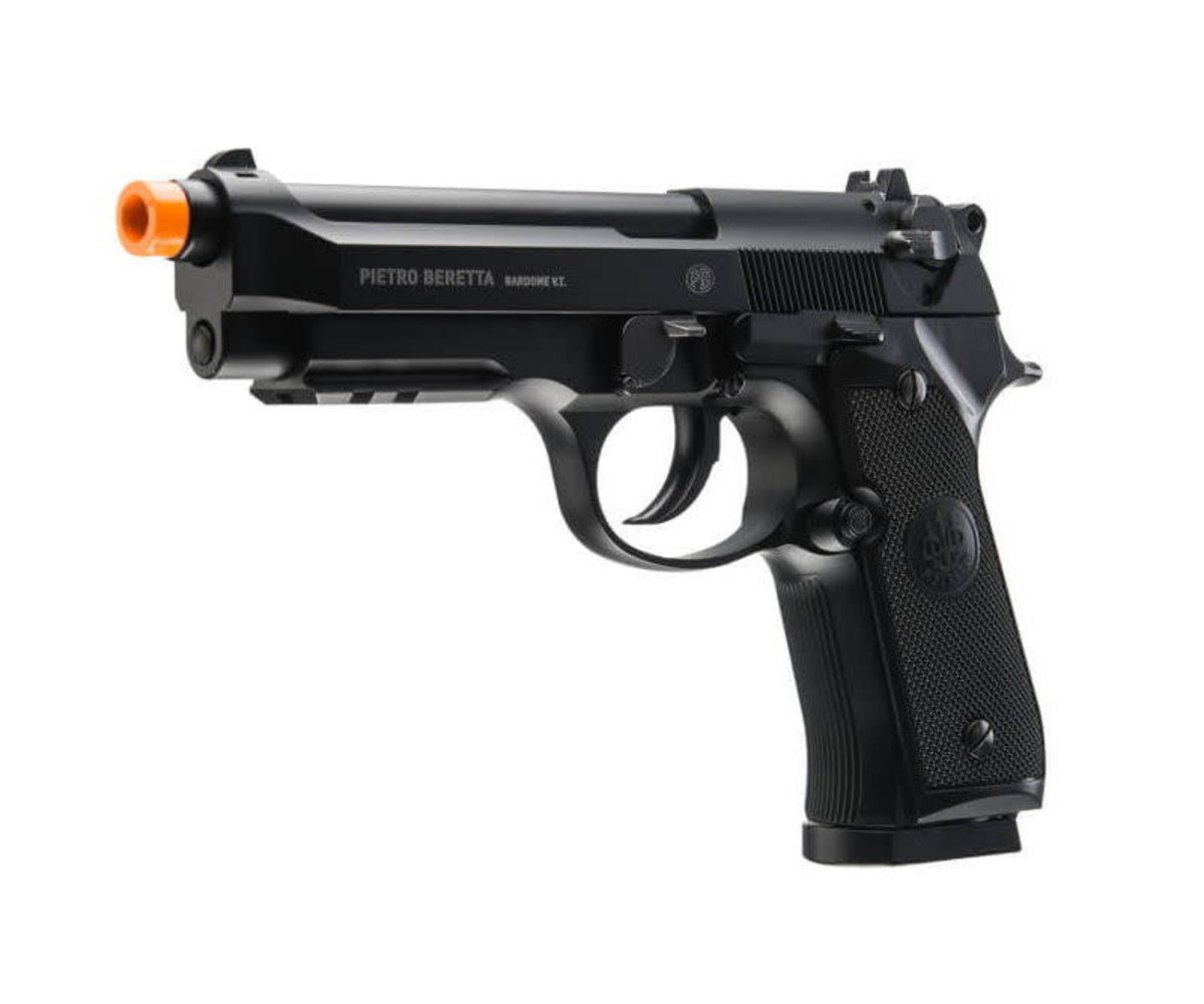 Beretta M92 A1 Full/Semi-Auto 6mm Airsoft BB pistol is CO2 powered and comes with a 22 round drop-free magazine. Complete with push-button mag release, metal slide, realistic blowback kick, and an adjustable hop-up.