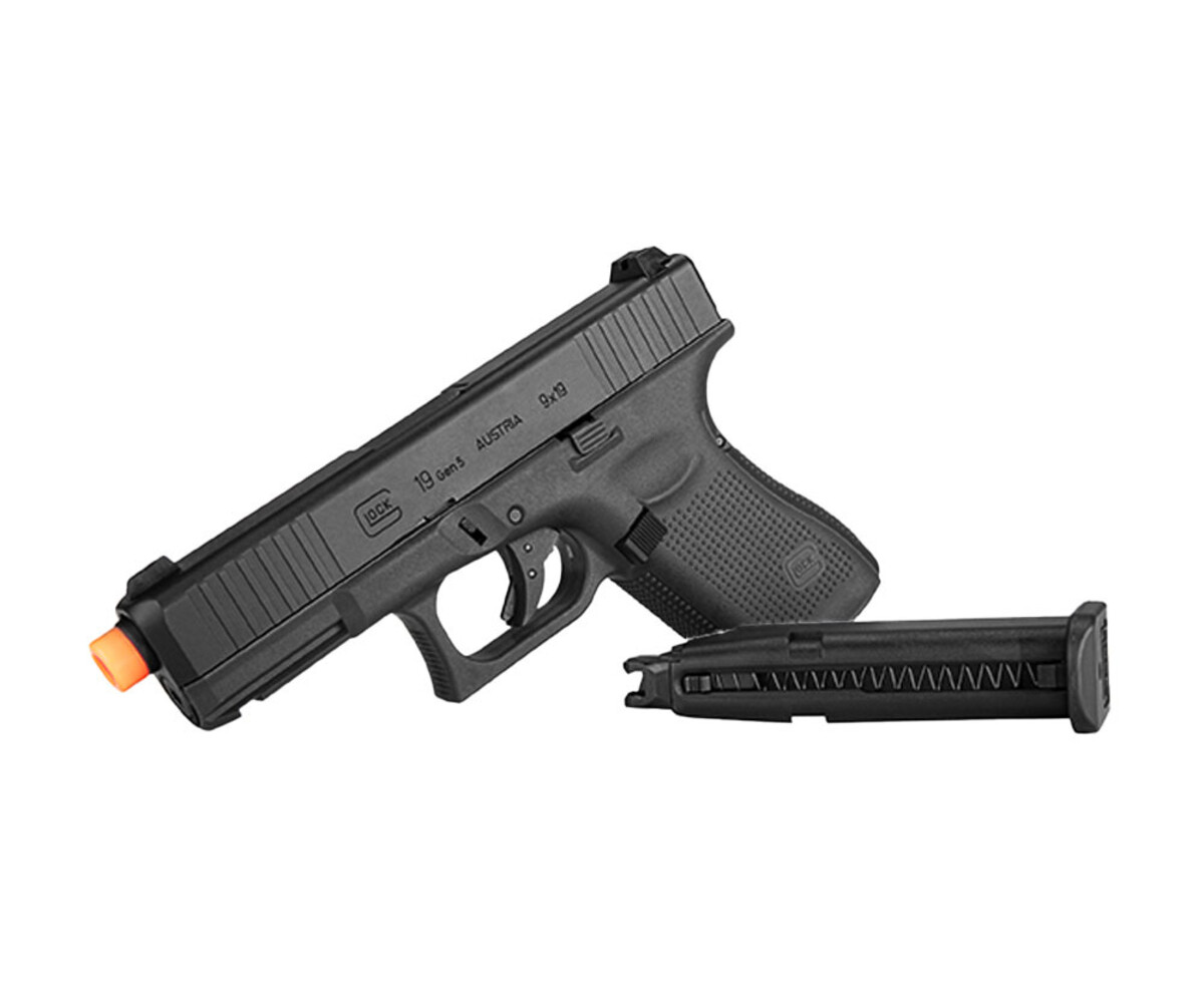 The Umarex Elite Force GLOCK 19 GEN5 Airsoft Gun delivers a powerful and realistic blowback action, providing players with an immersive shooting experience. Its ergonomic design ensures comfortable handling, while the textured grip enhances control during intense skirmishes. The pistol also incorporates a functional Glock safety for added security during use.