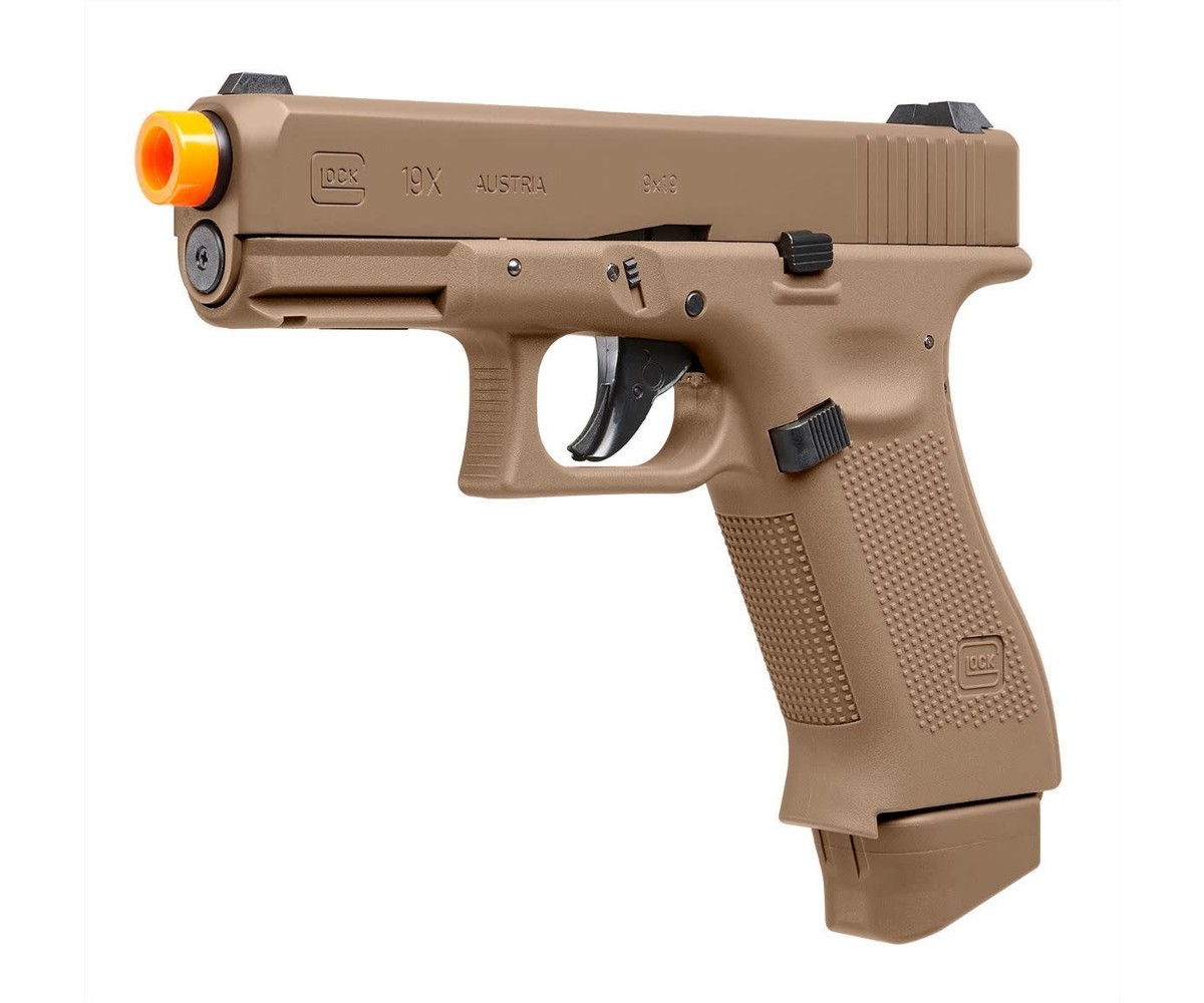 The Umarex Glock G19x CO2 Half gas blowback is a licensed replica of the real firearm with its metal slide to its polymer lower frame, this pistol is popular with players and gun enthusiasts alike. The G19x CO2 kicks fairly hard even though the slide only moves halfway while making it a very snappy and fun to shoot. Great for a backyard target blaster, or a cold-weather backup gun for winter games!