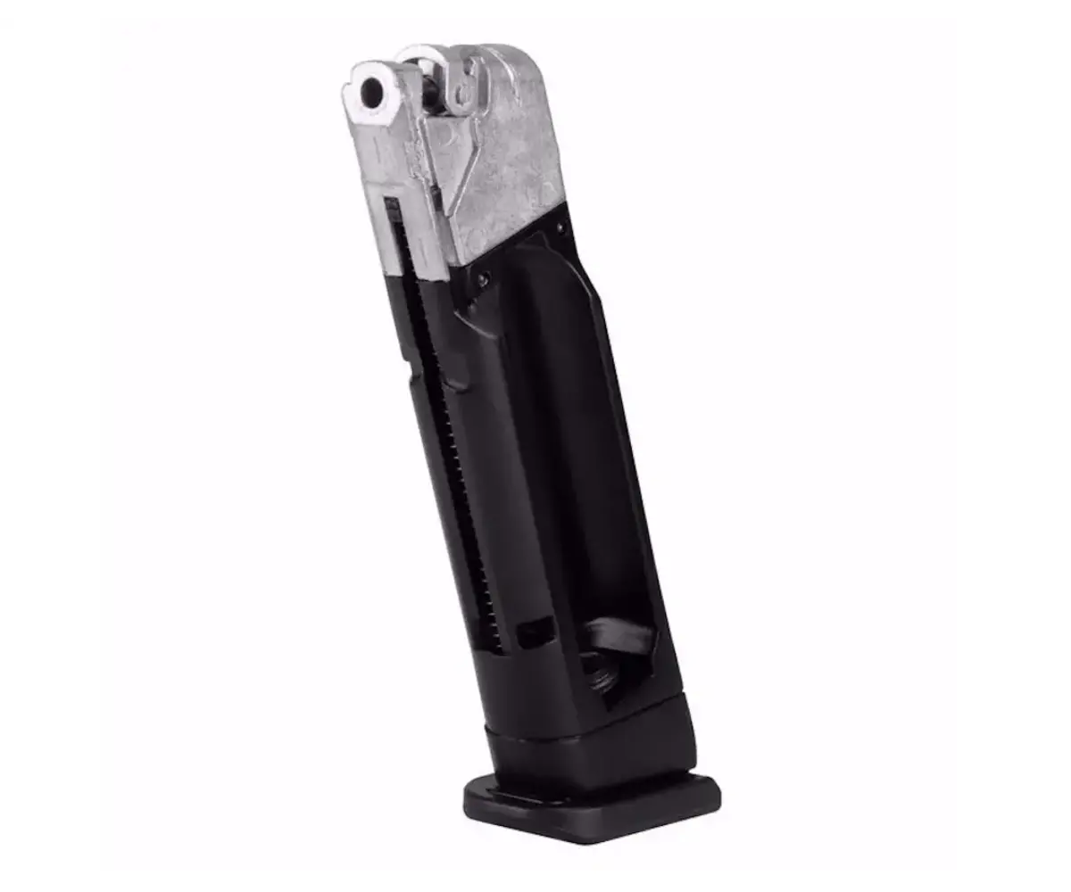 - 18-round drop-free magazine with integrated CO2 compartment