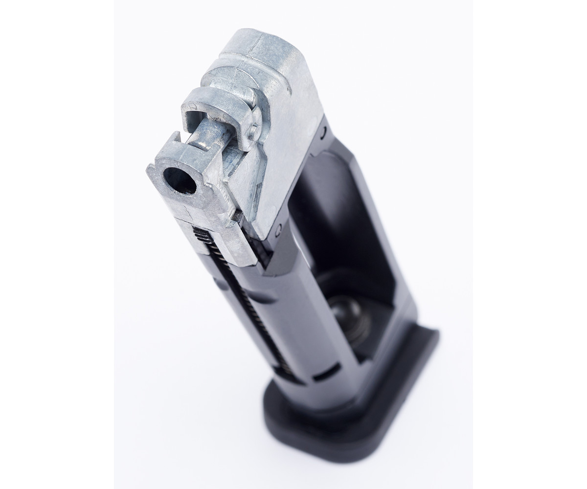 Featuring a sturdy all-aluminum construction and polymer baseplate with the Glock logo, these magazines are great to have as a spare reload or replacement for G17 CO2 HBB pistols. The large window for the 12g CO2 cartridge makes recharging the magazine and easy process, and the locking follower stays down to make reloading BBs faster in any condition.