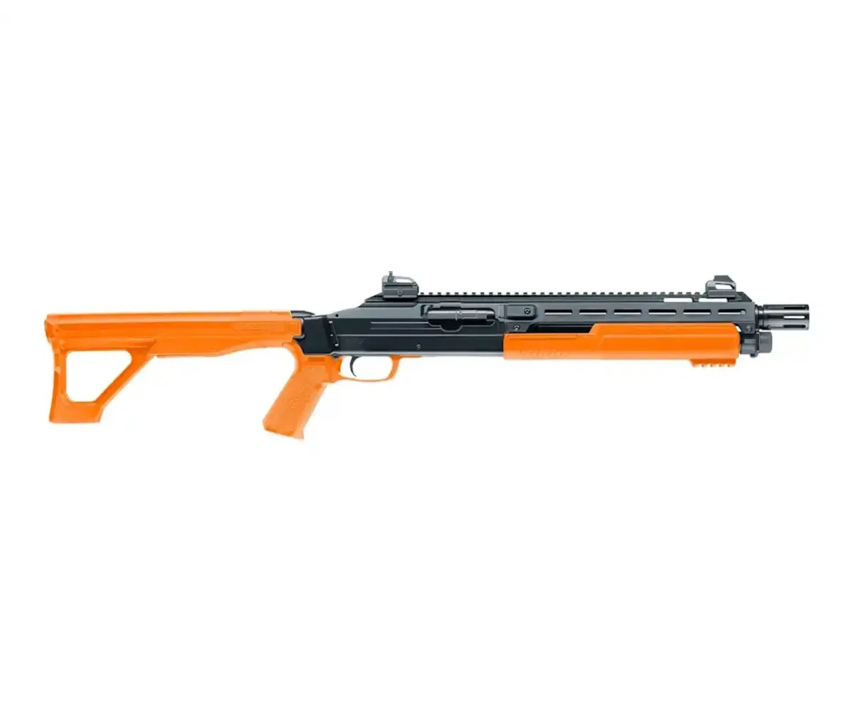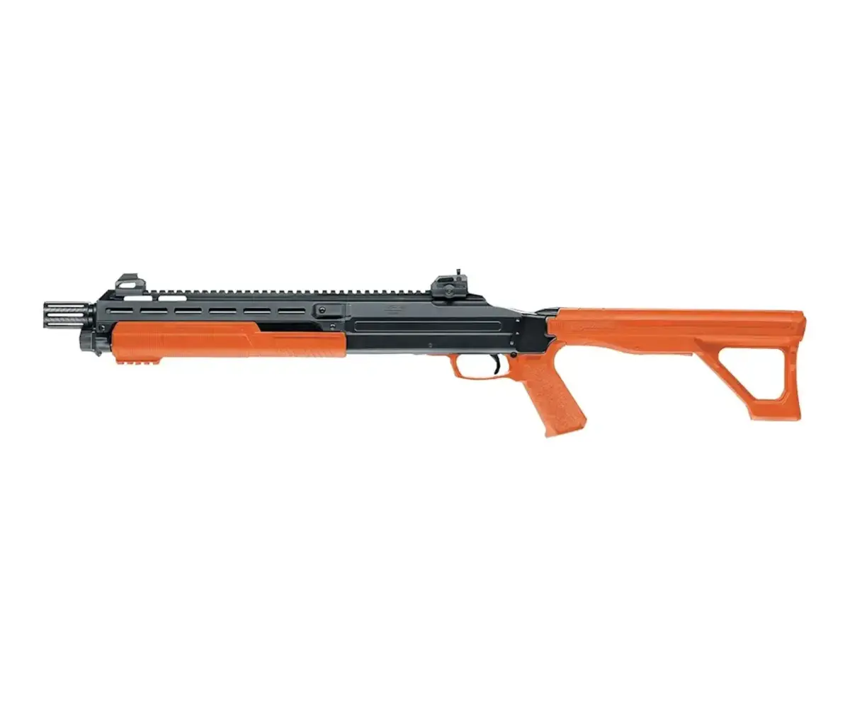 Complete Defense Kit Included: Out of the box, this shotgun includes 20 rubber rounds, 20 pepper rounds, a squeegee, loading ramp, and the 2x12g CO₂ adapter. The orange and black color scheme communicates non-lethal defensive intent while delivering a strong visual deterrent.