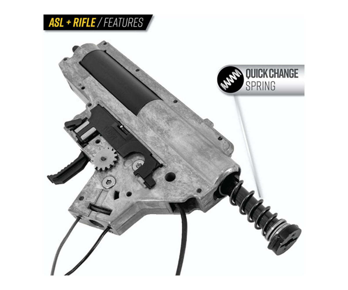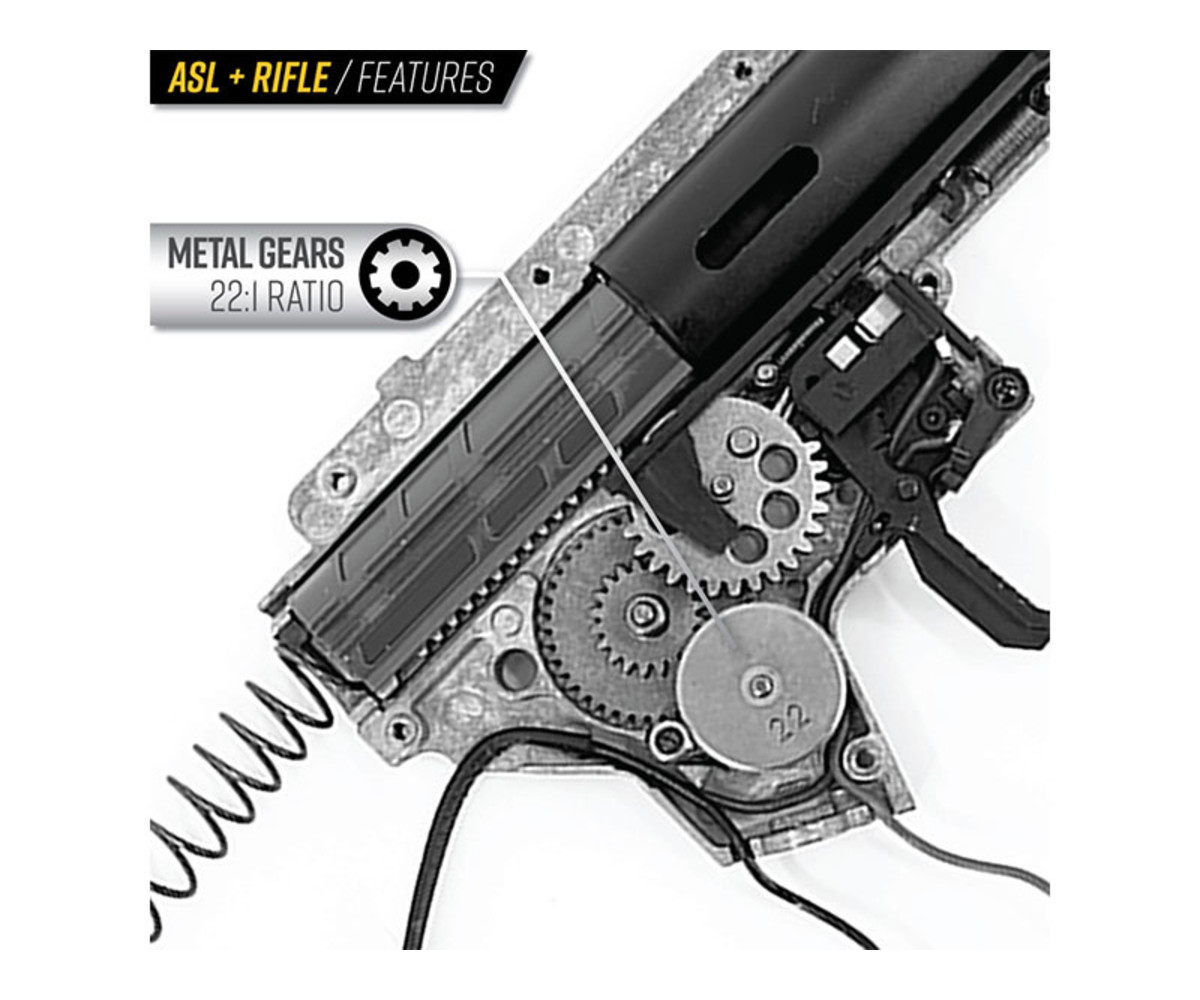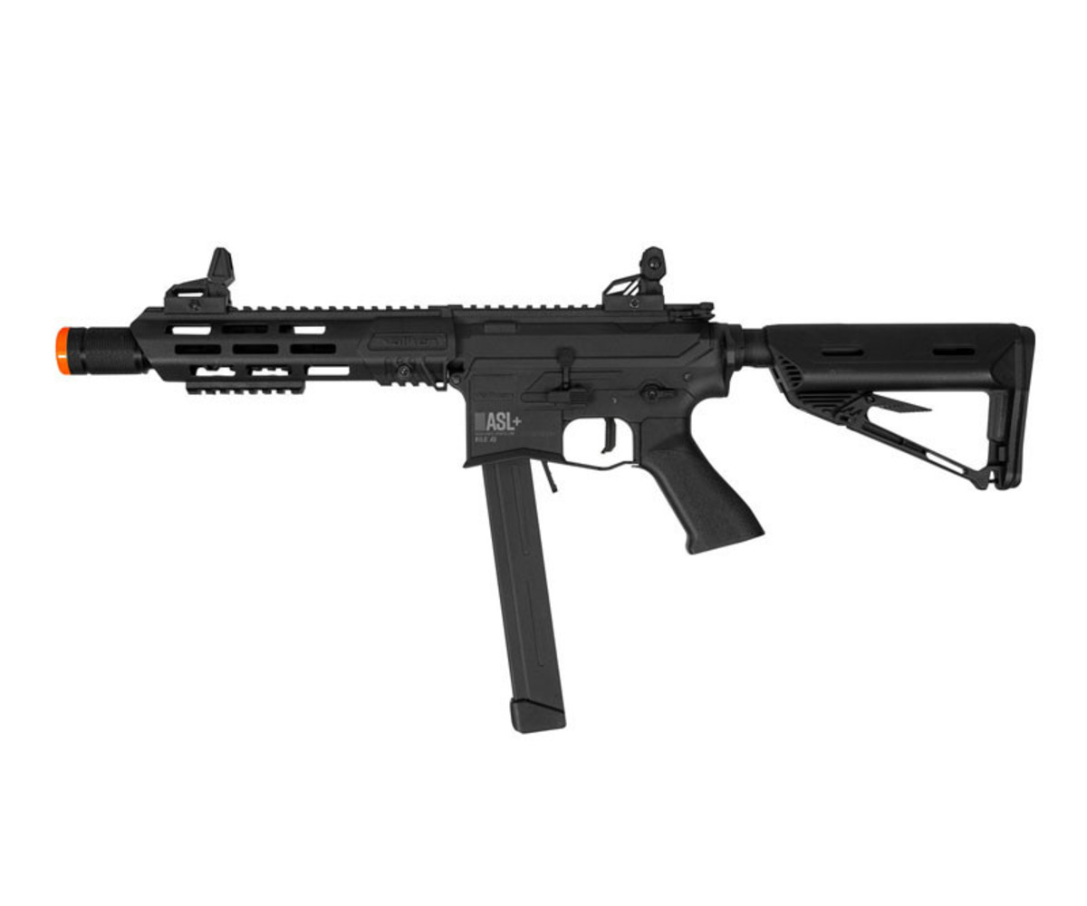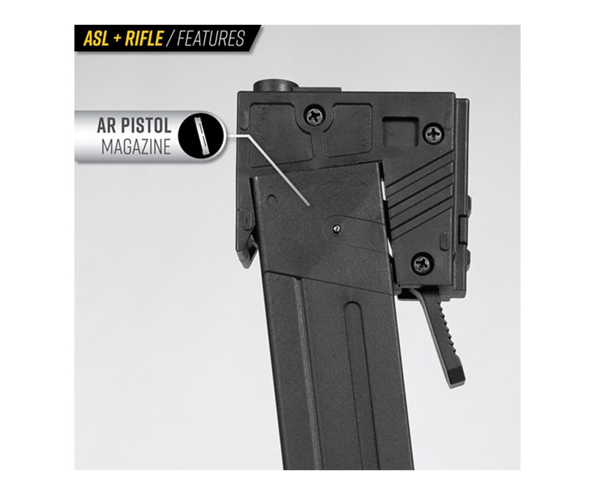 The Valken ASL+ Series Kilo.45 AEG adds several new features to our normal ASL Series rifles. Valken has upgraded the internal components to provide less stress on the gearbox, including a 22:1 ration gear set, piston with full metal teeth, and radial cuts in the gearbox shell. The ASL+ series also comes with a rotary style hop-up unit with locking increment settings. The Kilo.45 rifle also comes with new external features, including a newly designed molded flash hider, 260-round hi-cap SMG style magazine, and SMG magazine adapter that fits inside the M4 magazine well. All ASL+ series rifles are also covered by the Valken 1-year bulletproof warranty.