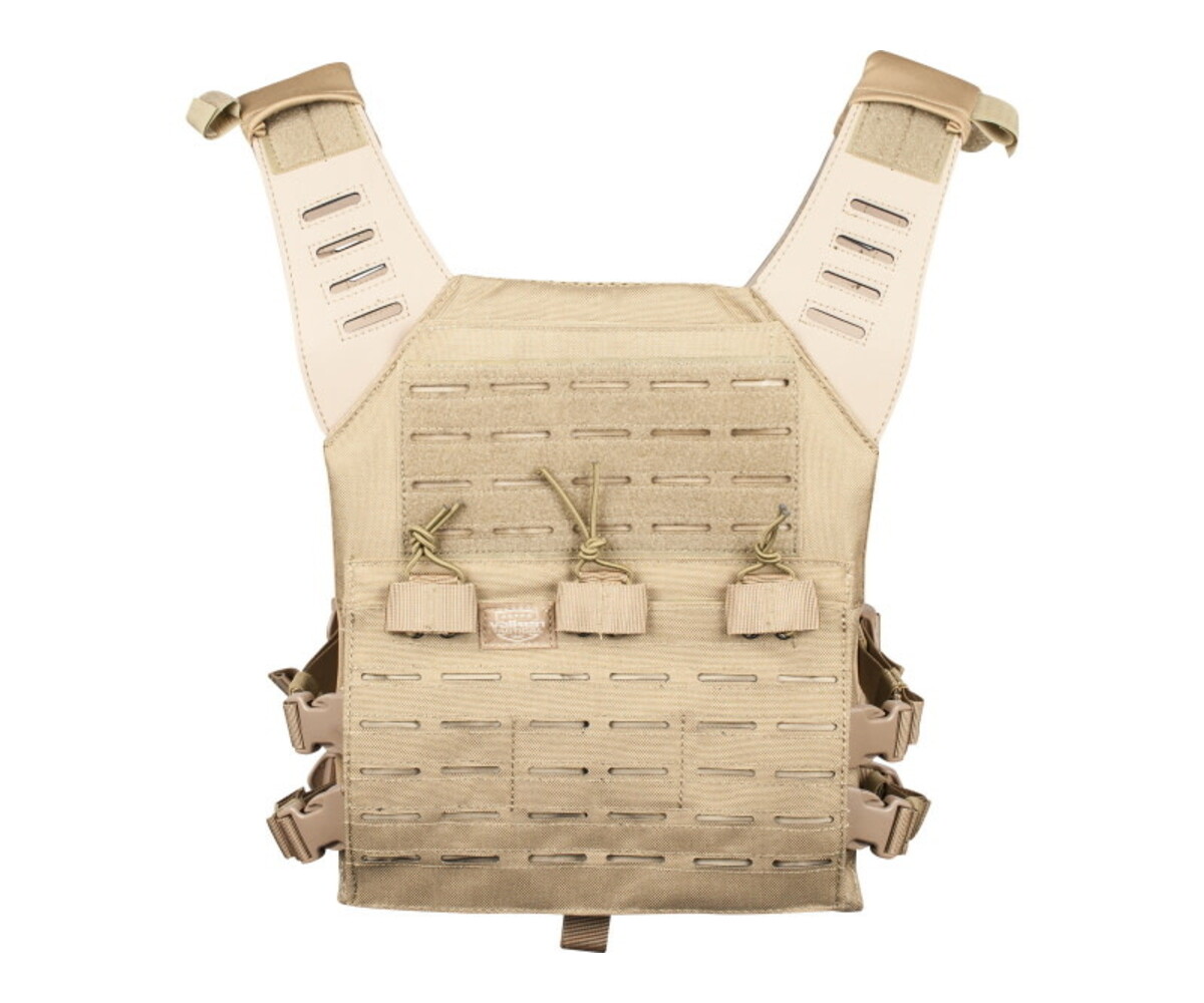 The Valken Laser Cut Plate Carrier is an update of our Valkan Plate Carrier II. It is an airsoft tactical vest with laser cut MOLLE attachment points located on the front and back, as well as on the shoulder straps. They are made from high durable nylon fabric, and include soft foam “dummy plate” inserts in the front and rear plate bags. This airsoft vest comes with adjustable side straps, and have built-in a triple M4 magazine pouch with elastic cord retention. The Valken Laser Cut Plate Carrier also has lightweight adjustable shoulder straps with integrated radio and hydration tube shoulder guides. We also recommend using Valken Multi-Rifle Magazine pouches to increase your tactical load capacity.