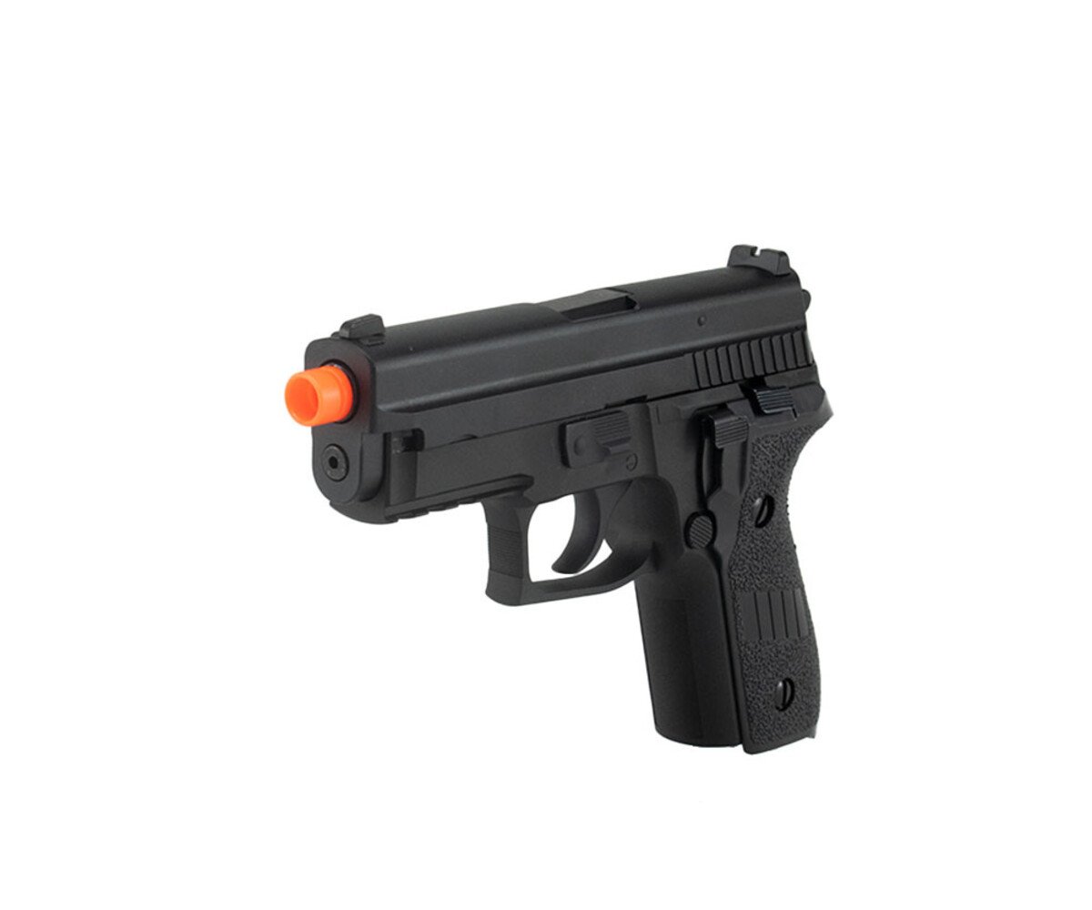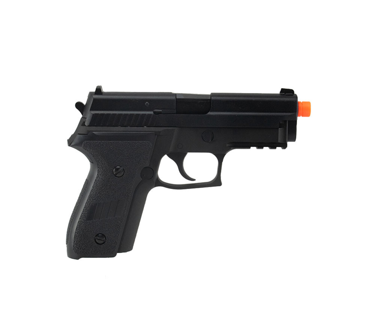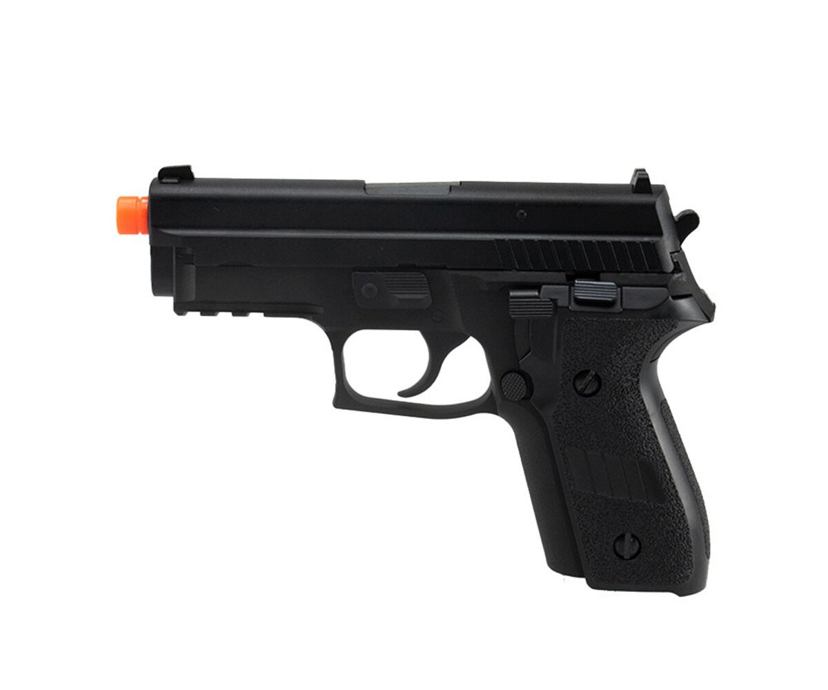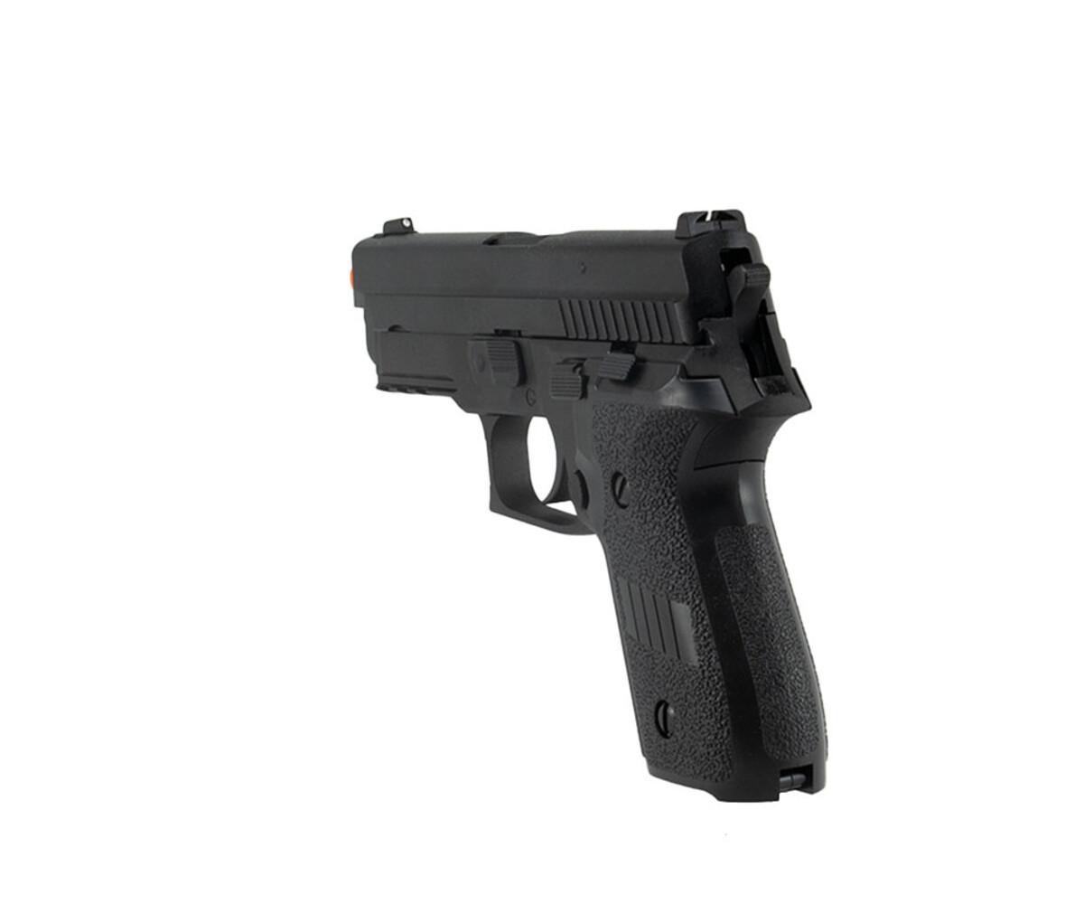 The WE F229 is a full metal pistol with a textured grip and a serrated slide for easy handling. It also comes equipped with a Picatinny rail for mounting tactical accessories like flashlights or lasers. The frame of the WE F229 has a convenient thumb magazine release, making reloading a breeze.
