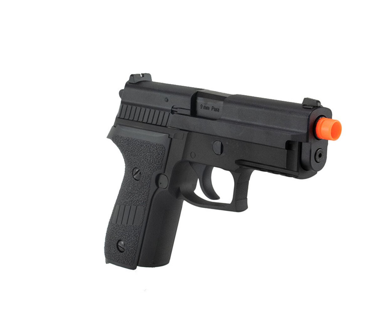 The WE F229 also has front and rear sights that are molded to the frame; the front sight has a white dot painted on it to assist with aiming. The WE F229 has an adjustable hop-up as well for easy field adjustments.
