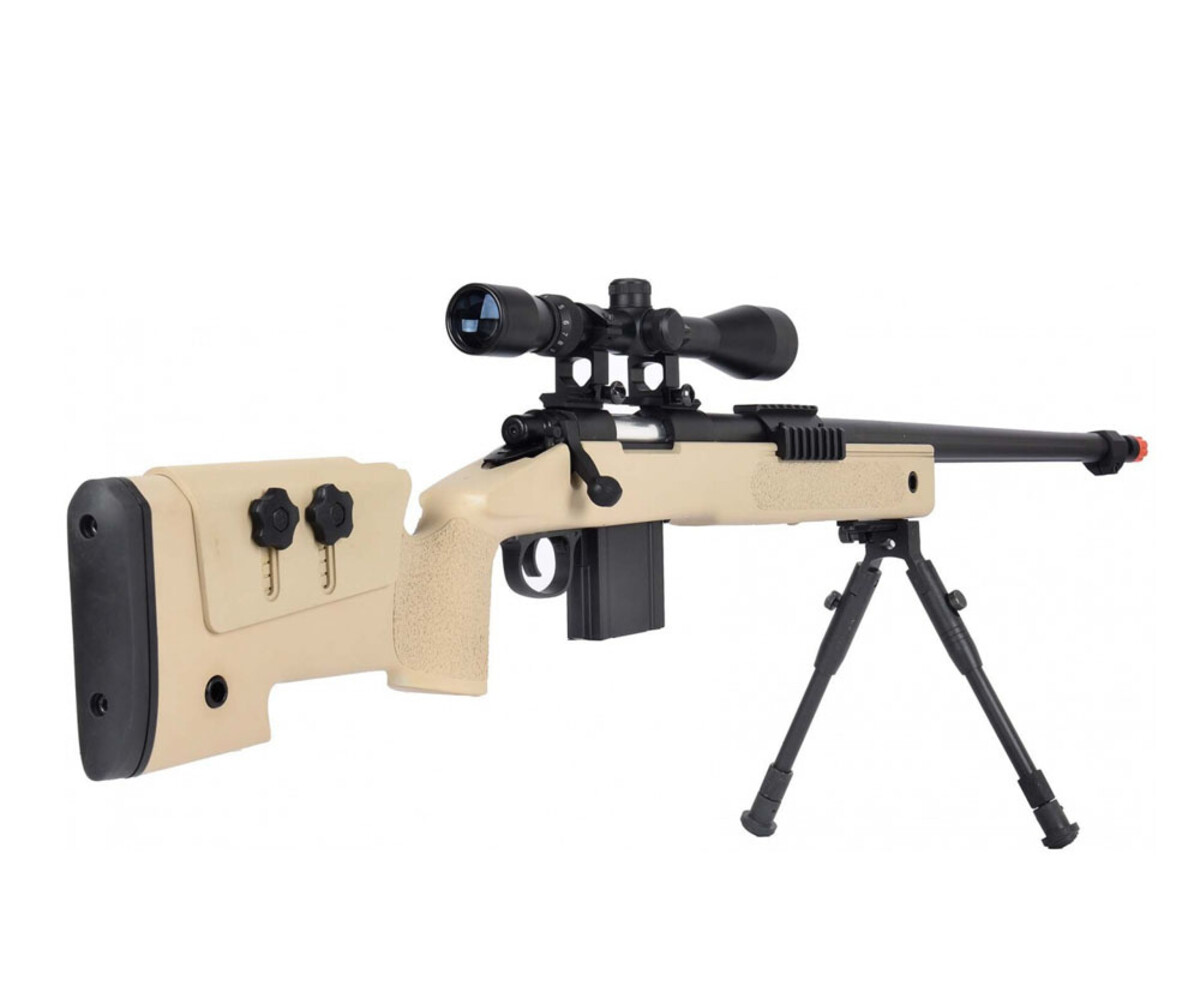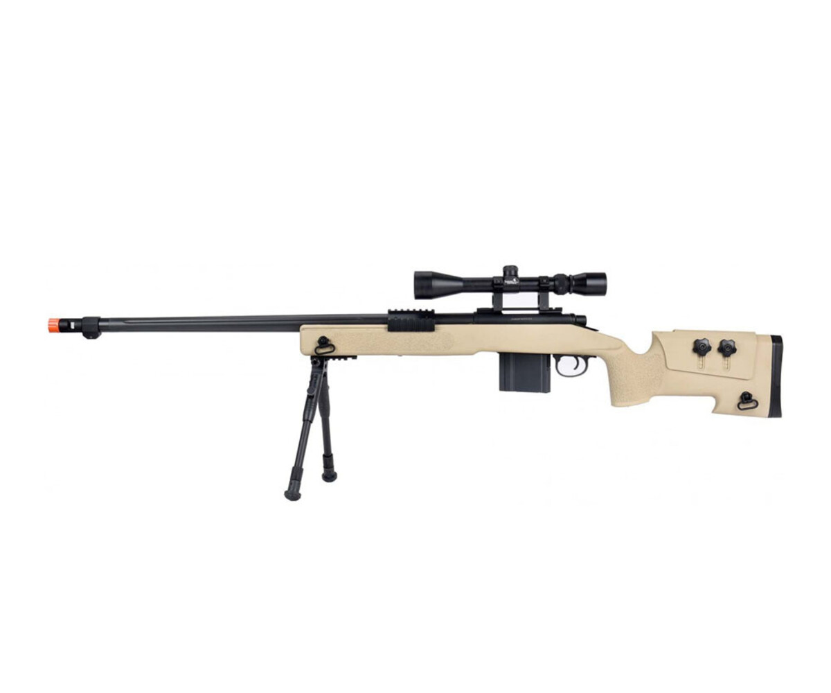 Wellfire M40A3 Spring Sniper Rifle w/ Scope and Bipod, Tan