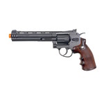 Experience the perfect blend of durability and performance with the Win Gun 6" Revolver CO2 Revolver. Crafted with a durable metal frame complemented by a lightweight nylon-reinforced polymer outer barrel and cylinder, this airsoft revolver ensures reliability and maneuverability on the field. Its high-capacity 8 round cylinder and CO2 gas system—compatible with common 12g CO2 cartridges—deliver consistent firing power, while the quick-reload "clips" offer swift and hassle-free reloading, setting it apart from traditional shell-based systems. The realistic double action firing mechanism and ergonomic grip design enhance handling and provide an authentic shooting experience.