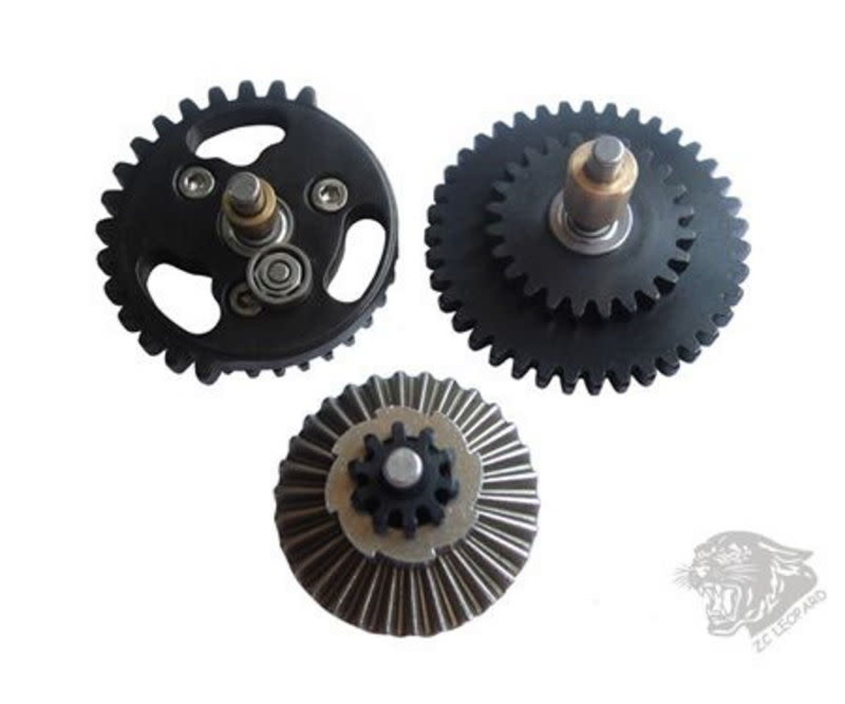 Looking to upgrade your AEG gearbox? Want a faster fire rate? Check out the ZCI CNC Steel 16:1 3mm Bearing Shaft Gear Set. This CNC steel gear set offers a faster fire rate for your gearbox due to the lower ratio. Plus, the bearing on the sector gear offers improved smoothness when it comes to operating the tappet plate.